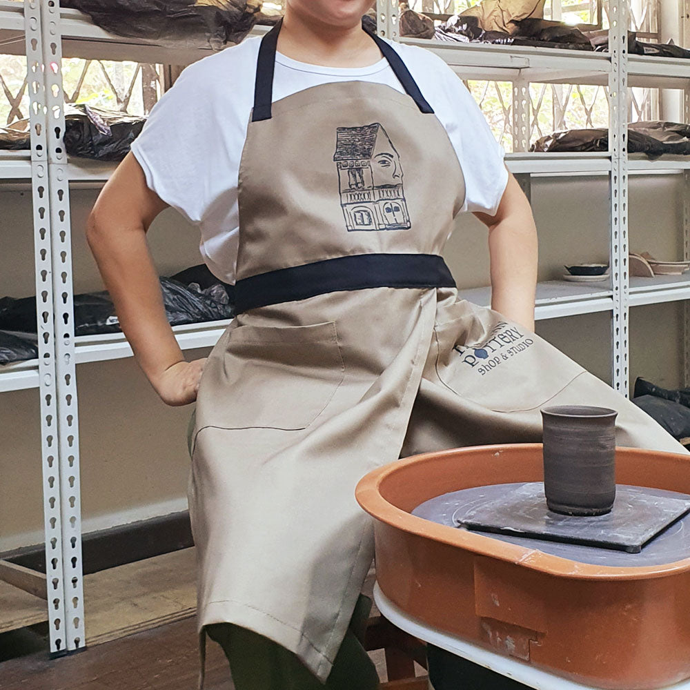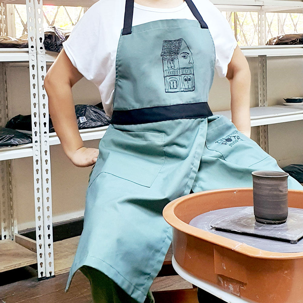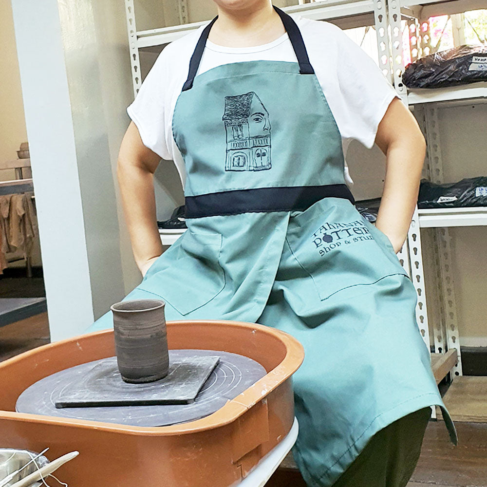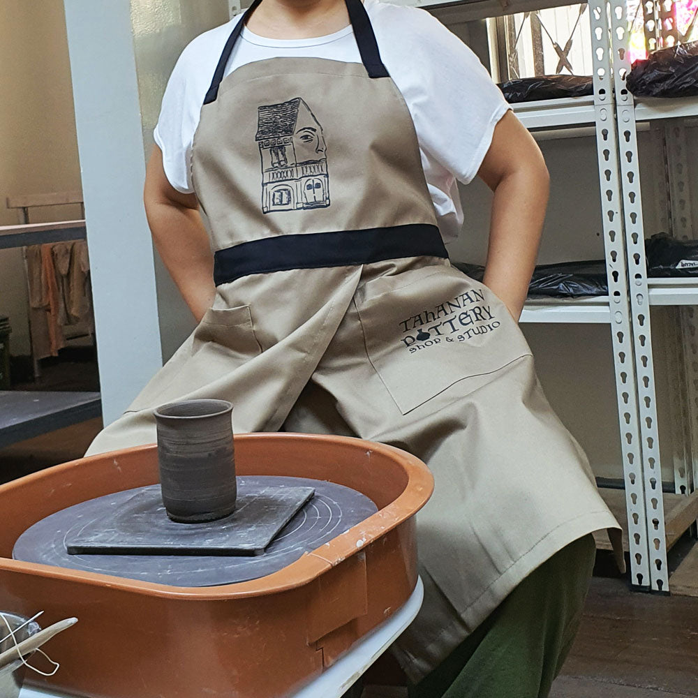 Tahanan Potter’s Apron are comfortable, functional and stylish aprons that are great for working in the studio. The split leg feature is good when working at the potter’s wheel.